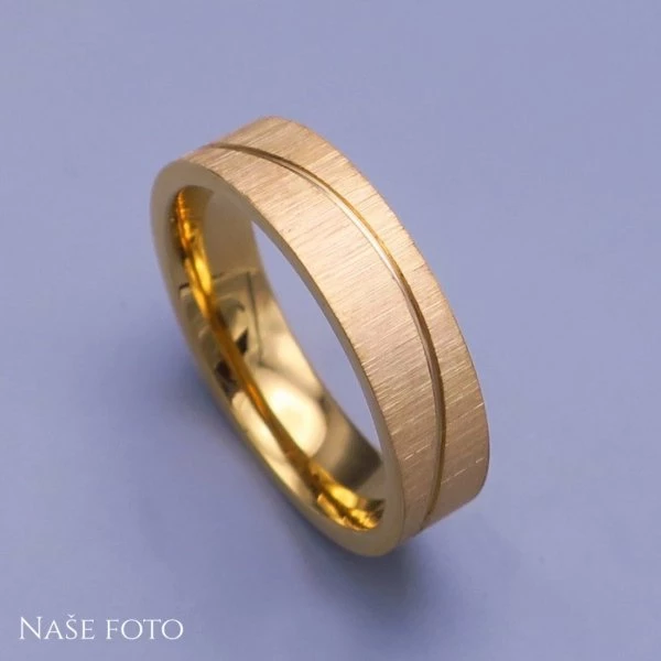 Dámský a pánský prstýnek z pozlacené chirurgické oceli zdobený jemným rytým proužkem