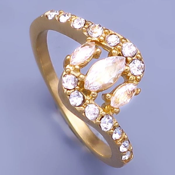 Zlacený prsten z chirurgické oceli je zdoben čirými zirkony. Velikosti 54,57, 11151