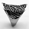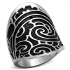 Zajímavě řešený ocelový prsten dekorovaný černými ornamenty