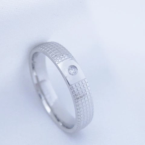 Prsten z leštěné chirurgické oceli je zdoben gravírováním a zirkonem v barvě crystal (čirá ). Šířka : 4mm Velikosti :54 Kód 602