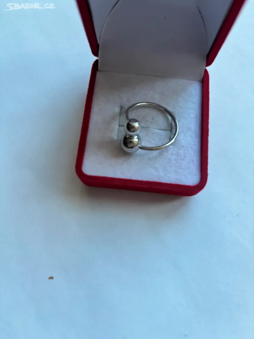 Krásný prstýnek zdobený kuličkami v různých velikostech větší kulička ve velikosti 8mm a menší 5mm