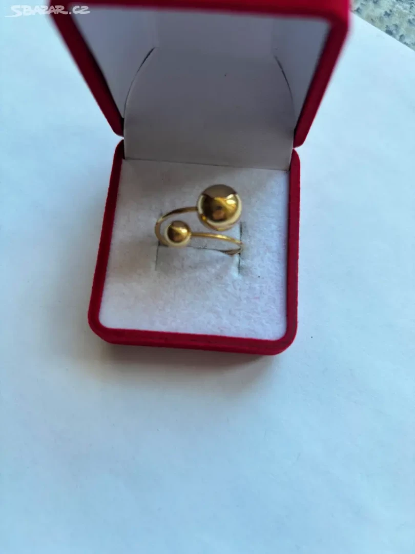 Krásný prstýnek ze zlacené chirurgické oceli zdobený kuličkami v různých velikostech větší kulička ve velikosti 8mm,menší 5mm