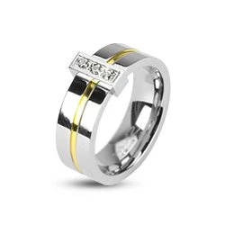 Ocelový prsten z chirurgické oceli 316L Parametry druh kamene zirkon typ prstenu snubní Velikosti 50-52