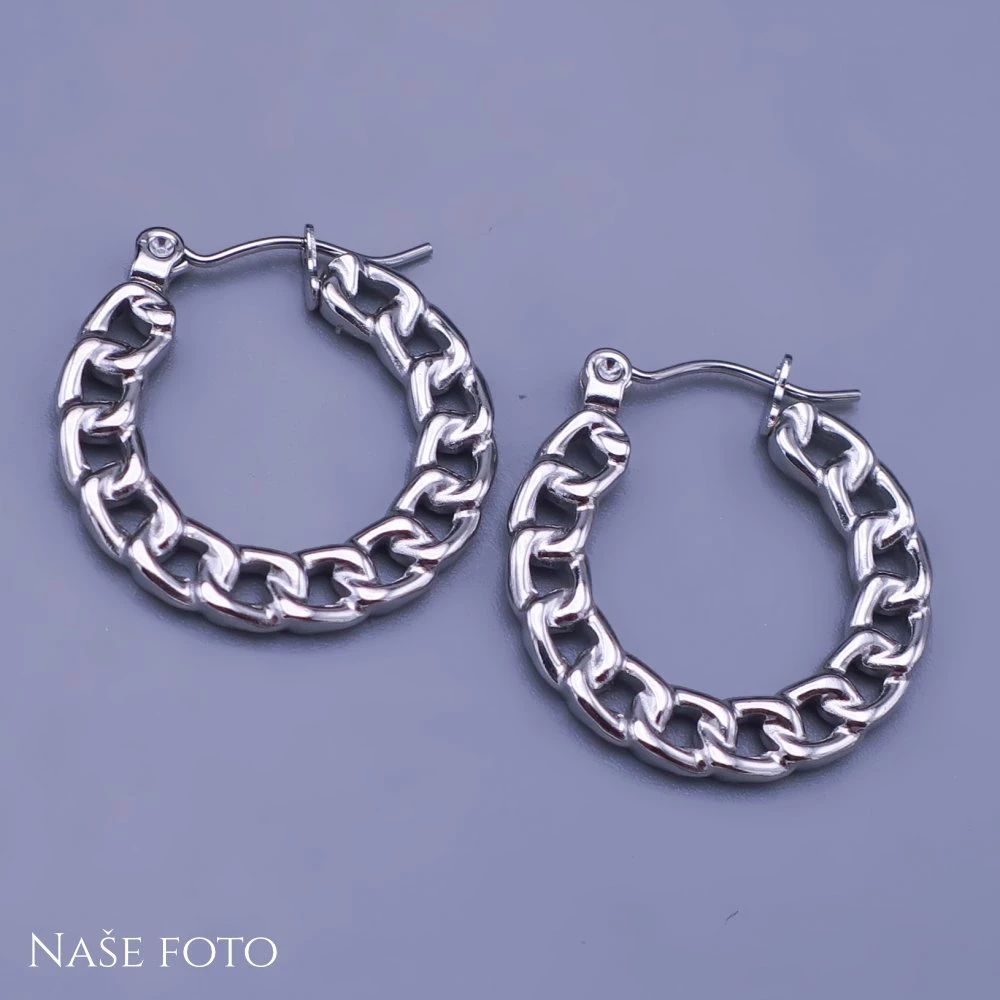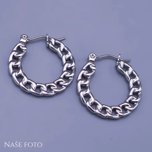 Řetízkové náušnice kruhy z leštěné chirurgické oceli.