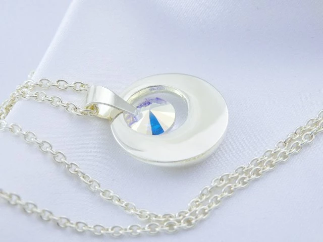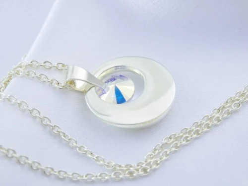 Přívěsek z chirurgické oceli kolečko je zdobeno crystalem Swarovski velikosti 8mm v barvě Crystal AB (měnící ) Povrchová úprava zlacení 14kar. Síla 3mikr. Velikost : 20mm Přívěsek je zavěšen na řetízku z chirurgické oceli v šířce 1,2mm jehož délku si můžete vybrat z variant od 40-45-50cm Chirugická ocel je vhodná pro alergiky na běžné kovy . Kód PZ030