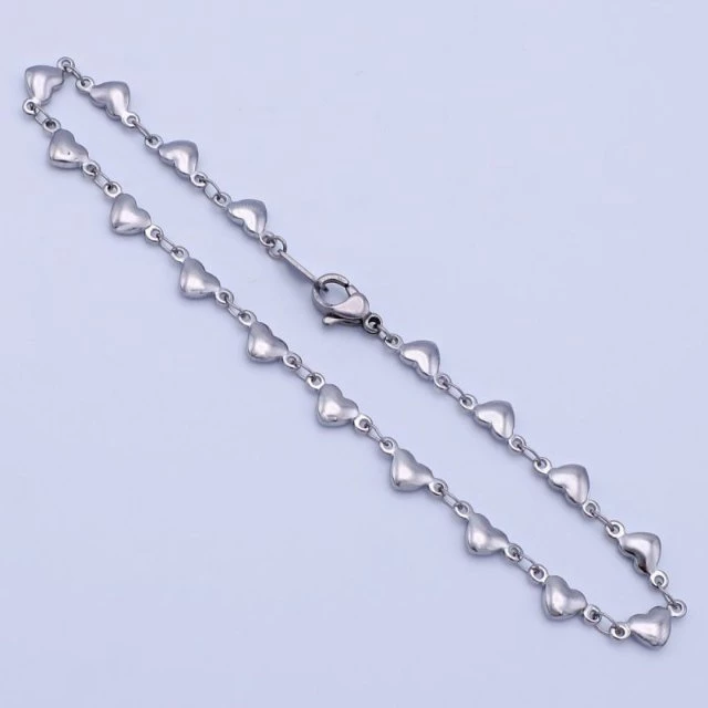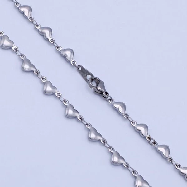 Řetízek z leštěné chirurgické oceli je složený z oboustranných srdíček o velikosti 5mm. Zapínání na karabinu. Délka na výběr od 40-45-50-55-60-cm K řetízku nabízíme také náramek.