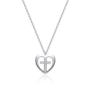 Stříbrný náhrdelník se zavěšeným přívěškem v podobě srdíčka s křížkem