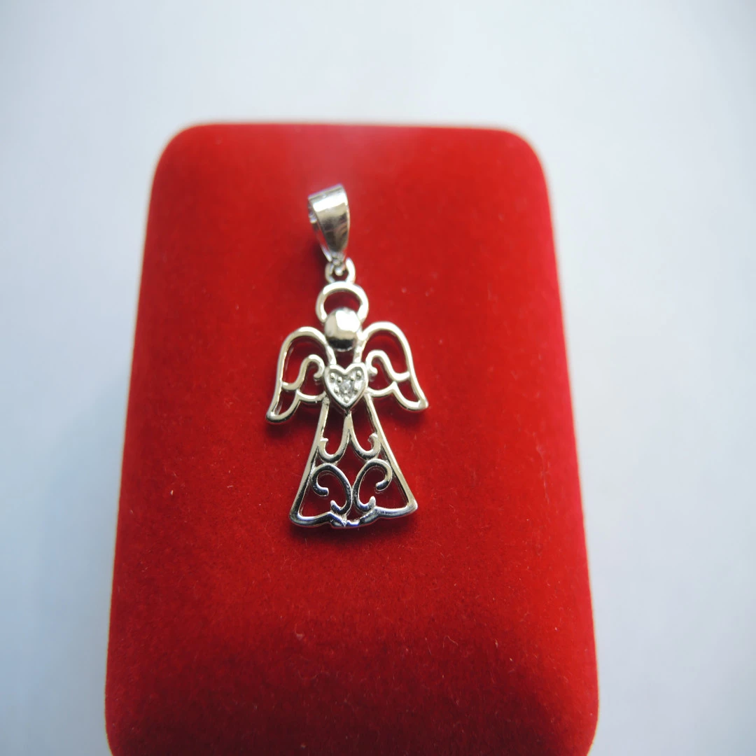 Stříbrný přívěšek ve tvaru andílka zdobeného zirkony čiré barvy