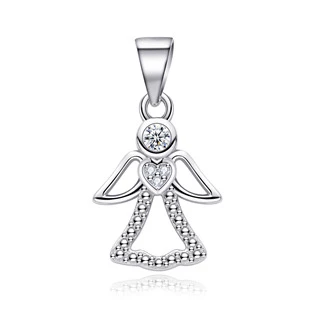 Stříbrný přívěšek ve tvaru andílka zdobeného zirkony čiré barvy