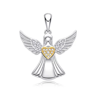 Stříbrný přívěsek v podobě okřídleného andílka držícího srdíčko zdobené zirkony