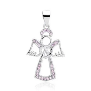 Stříbrný přívěšek ve tvaru andělíčka zdobeným růžovými zirkony