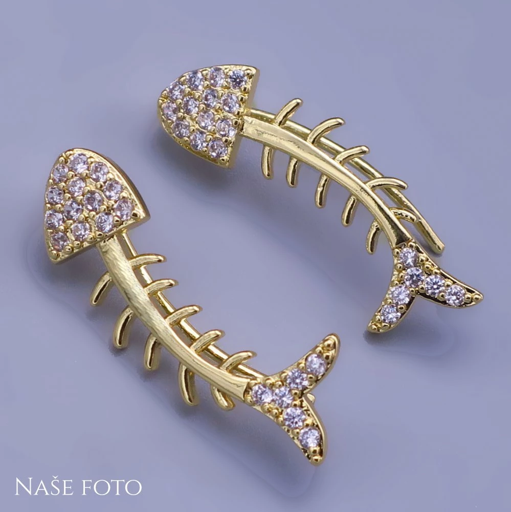 Záušnice rybí kostry, jsou zdobené čirými zirkony.