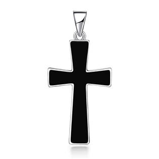 Stříbrný přívěsek křížek dekorovaný černou smaltovou výplní