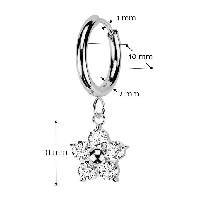 Ocelové náušnice kroužky se zavěšenými kytičkymi zdobenými čirými zirkony