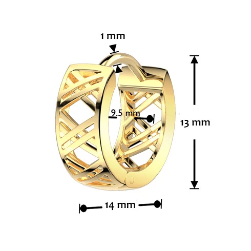 Náušnice jsou vyrobeny z chirurgické oceli s jakostním označením 316L a mají povrchovou úpravu v barvě žlutého zlata