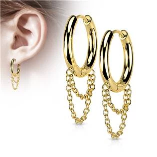 Náušnice jsou vyrobeny z chirurgické oceli s jakostním označením 316L a mají povrchovou úpravu v barvě žlutého zlata