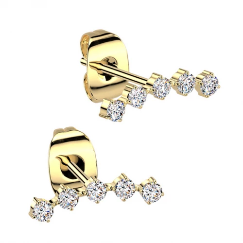 Zlacené ocelové puzetové náušnice dekorované čirými zirkony