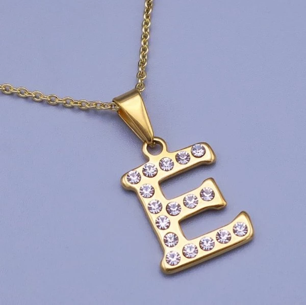 Písmeno z chirurgické E oceli je zdobeno čirými zirkony.