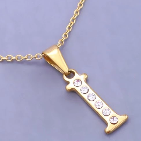 Pozlacené písmeno I z chirurgické oceli je zdobeno čirými zirkony.