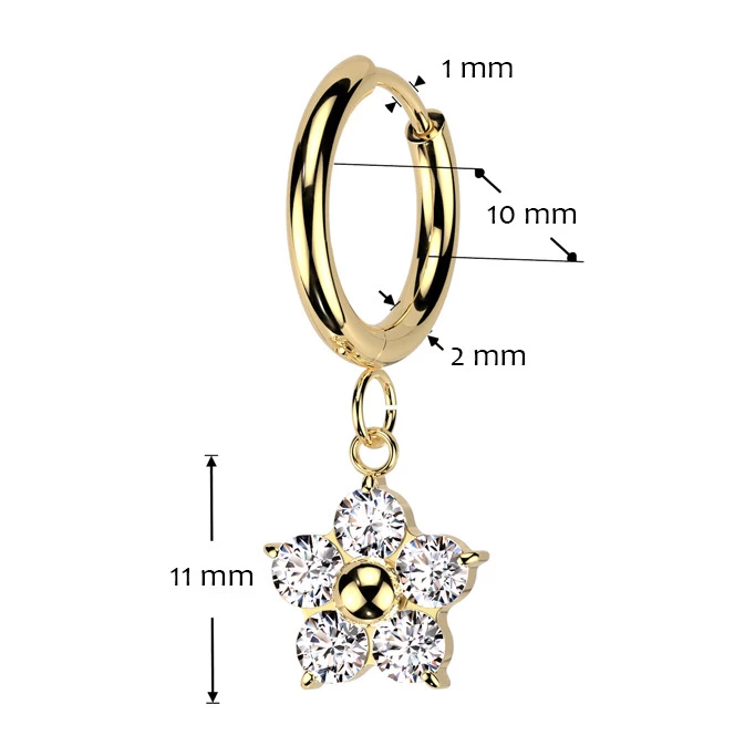 Ocelové náušnice kroužky se zavěšenými kytičkymi zdobenými čirými zirkony