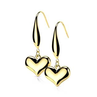Visací ocelové náušnice dekorované srdíčky