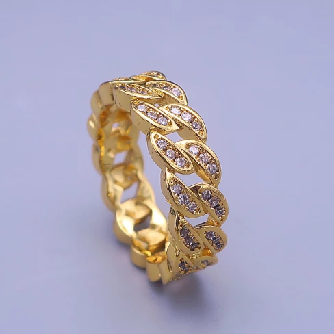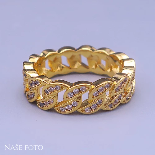 Stylový prsten z pozlacené chirurgické oceli inspirovaný klasickým Cuban link řetězem. Každý článek je zdoben drobounkými čirými krystaly, které vytvářejí efektní třpyt při každém pohybu ruky. Ideální pro ženy i muže, kteří milují výrazné doplňky, originalitu a street eleganci.