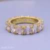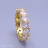 Elegantní prsten z pozlacené chirurgické oceli, osázený po celém obvodu velkými čirými broušenými kameny, které vytvářejí efekt dokonalého třpytu. Jeho čistý a nadčasový design vynikne samostatně i v kombinaci s dalšími prsteny. Symbol sebevědomí, stylu a luxusu v minimalistickém provedení.