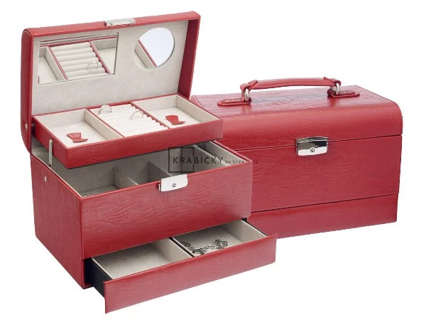 Rozměry: 260x180x161 mm Barva: červená Použítí: šperkovnice Materiál: koženka