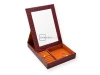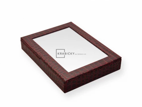 Zrcadlo s rámem z koženky a úložným prostorem na šperky ZR-2-A10-A. Rozměr: 198x265x45 mm. Materiál koženka