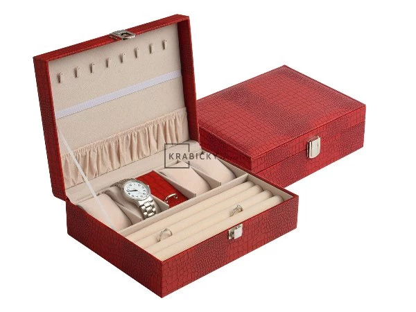 Rozměry: 240x190x80 mm Barva: červená Použítí: šperkovnice Materiál: koženka