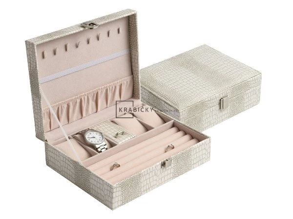 Rozměry: 240x190x80 mm Barva: krémová Použítí: šperkovnice Materiál: koženka