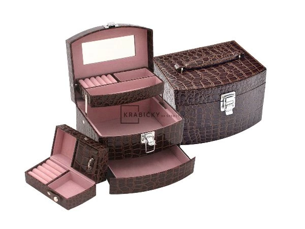 Krásná šperkovnice na vaše šperky Rozměr: 188x150x130 Barva: hnědá Dvouletá záruka Součástí je cestovní šperkovnička