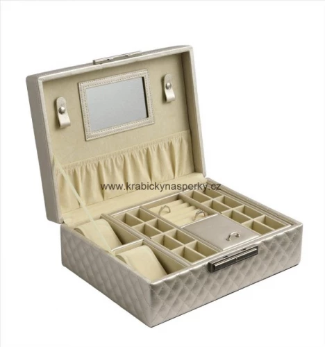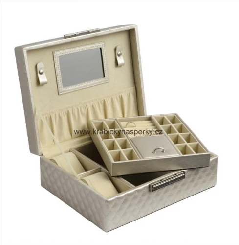 Kód: SP-570-A20 Rozměr: 263x200x90 Barva: krémová Použití: šperkovnice Materiál: imitace kůže