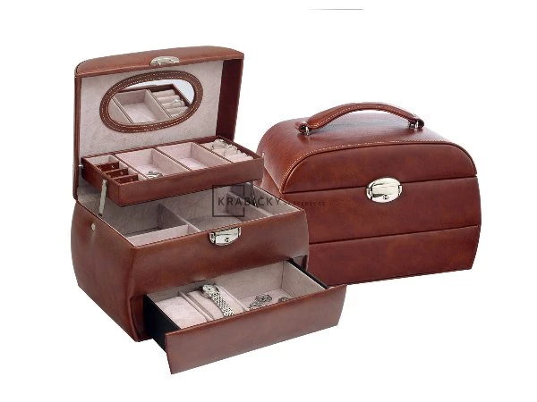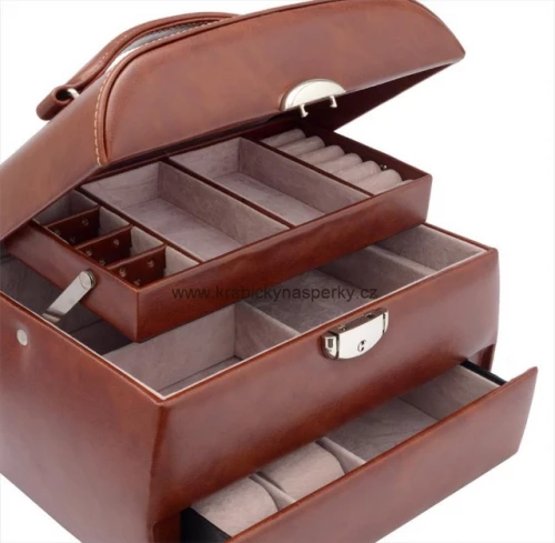 Kód: SP-902-A21 Rozměr: 240x160x200 Barva: hnědá Použití: šperkovnice Materiál: imitace kůže