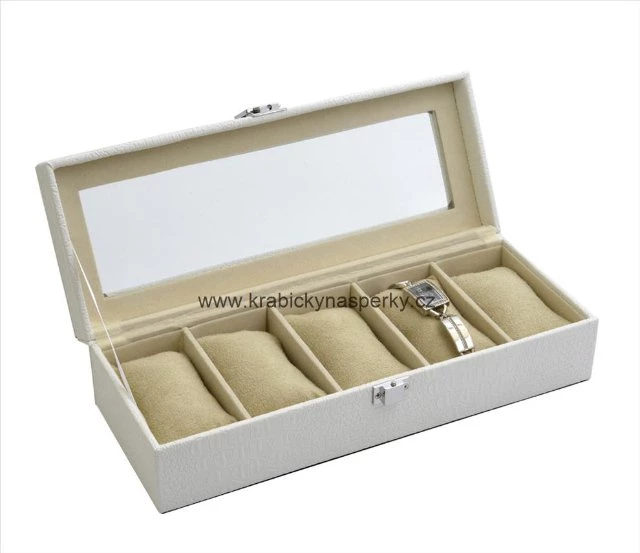 Kód: SP-936-A20 Rozměr: 295x115x78 Barva: krémová Použití: hodinky, náramky Materiál: imitace kůže