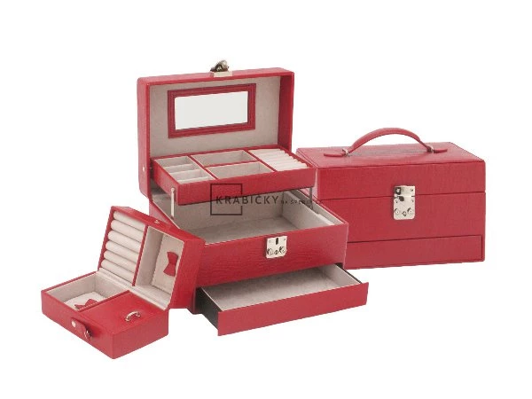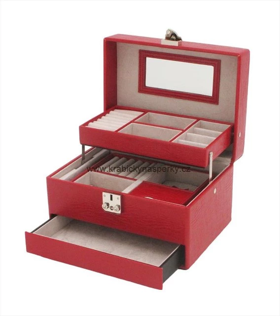 Rozměr: 250x170x141 Barva: červená Použití: šperkovnice Materiál: imitace kůže
