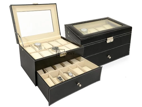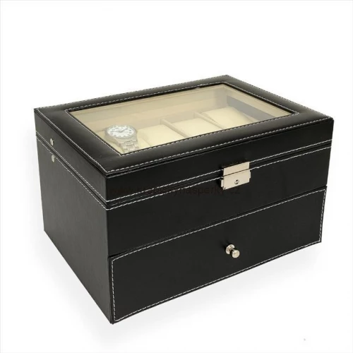 Krásná šperkovnice na hodinky pro celou rodinu Kód: SP-946-A25 Rozměr: 280x200x165 Barva: černá Použití: šperkovnice Materiál: imitace kůže Pro ženy: 1 Balení: 1 ks Dvouletá záruka