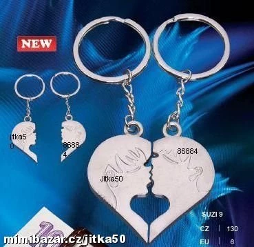 Udělejte si radost krásnou klíčenkou Klíčenka je z odlehčené oceli,upravená tak,aby nebyla těžká.Klíčenka je určena pro zamilované.Můžete si vybrat zda pro ženy anebo pro pány