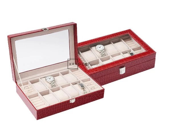 Krásná šperkovnice na vaše hodinky a šperky Kód: SP-938-A7 Rozměr: 300x195x75 Barva: červená Použití: šperkovnice Materiál: imitace kůže Pro ženy: 1 Balení: 1 ks Dvouletá záruka