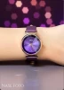 Lesklý fialový ciferník zaujme na první pohled, zatímco zlaté pouzdro dodává hodinkám ženský a vytříbený styl.