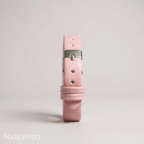 Úzký růžový koženkový pásek dodává hodinkám ženskost a lehkost, díky čemuž se skvěle hodí jak k elegantnímu outfitu, tak i k jemnému dennímu looku.