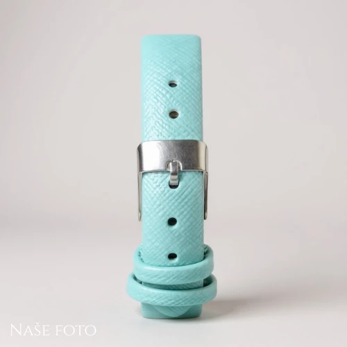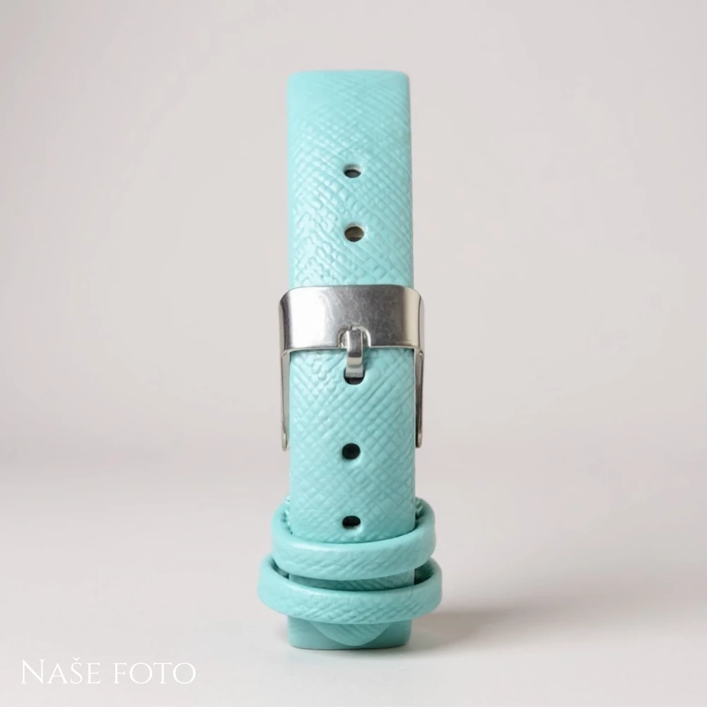 Modrý koženkový pásek dodává celku letní energii a lehkost, zatímco zlaté prvky přinášejí nádech luxusu. Perfektní volba pro ženy, které chtějí něco jiného než klasiku.