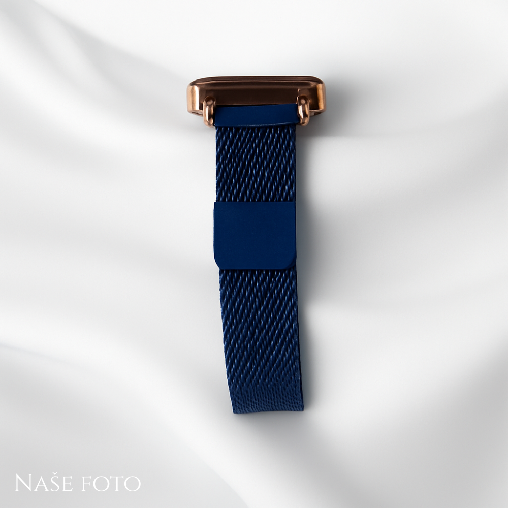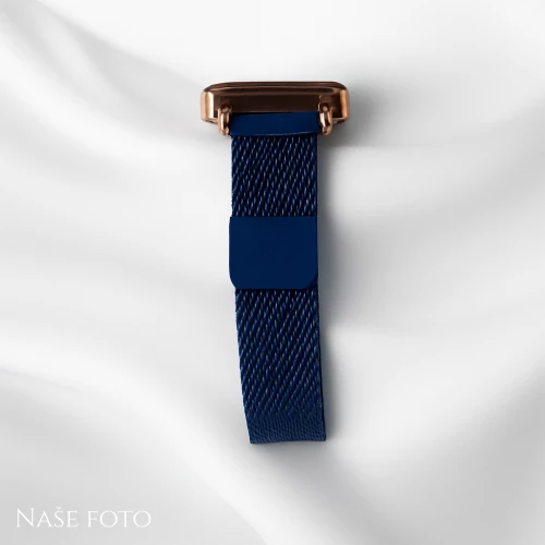 Lesklé kamínky na ciferníku vytvářejí decentní třpyt a modrý kovový magnetický řemínek zajišťuje pohodlné a spolehlivé nošení.