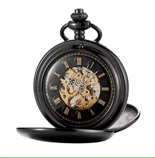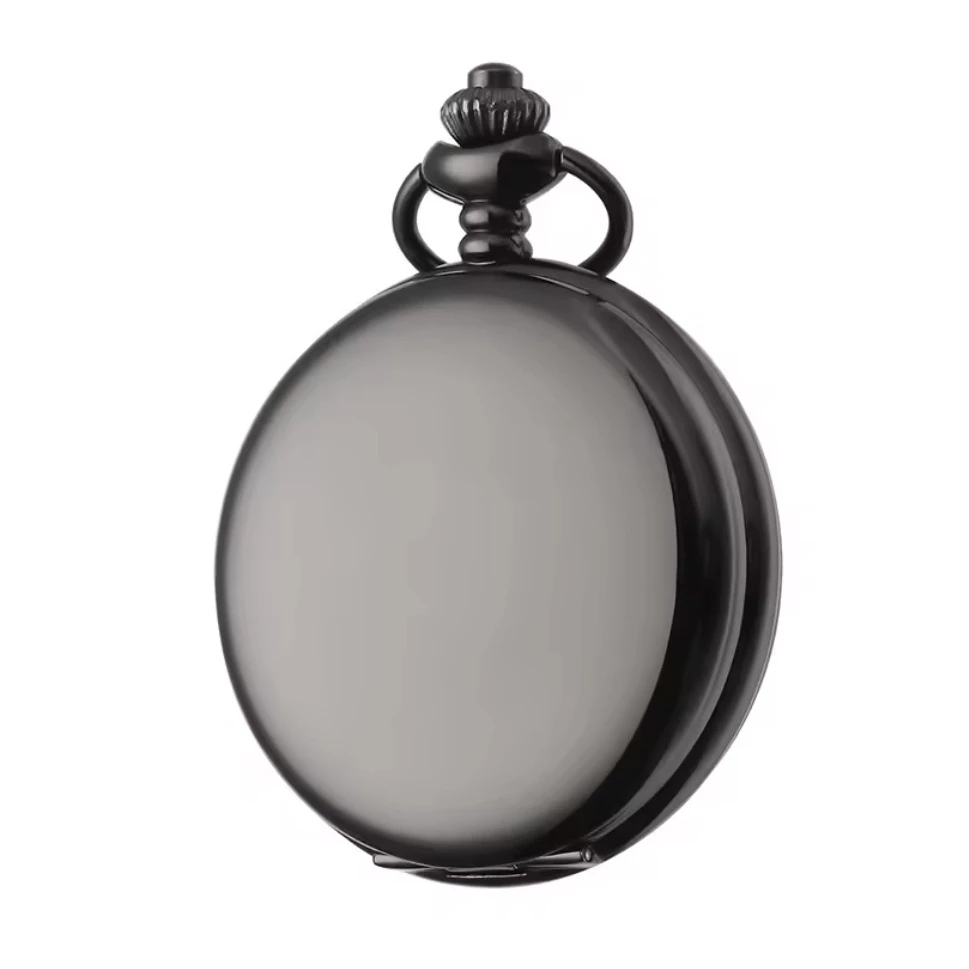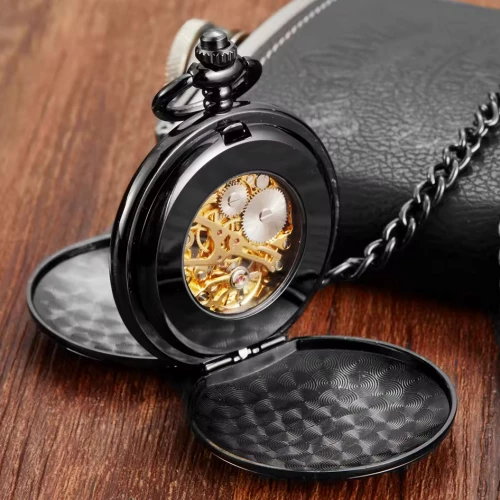 Natahovací kapesní otevírací hodinky z kovu s černou povrchovou úpravou