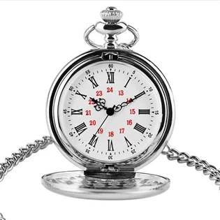 Řetízek hodinek je součástí dodávky, pouzdro je celokovové, hodinový strojek na baterii