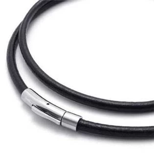 Kožená šňůrka na krk - náhrdelník s ocelovým uzávěrem