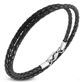 Kožený náhrdelník splétaný - ocelový uzávěr 50cm