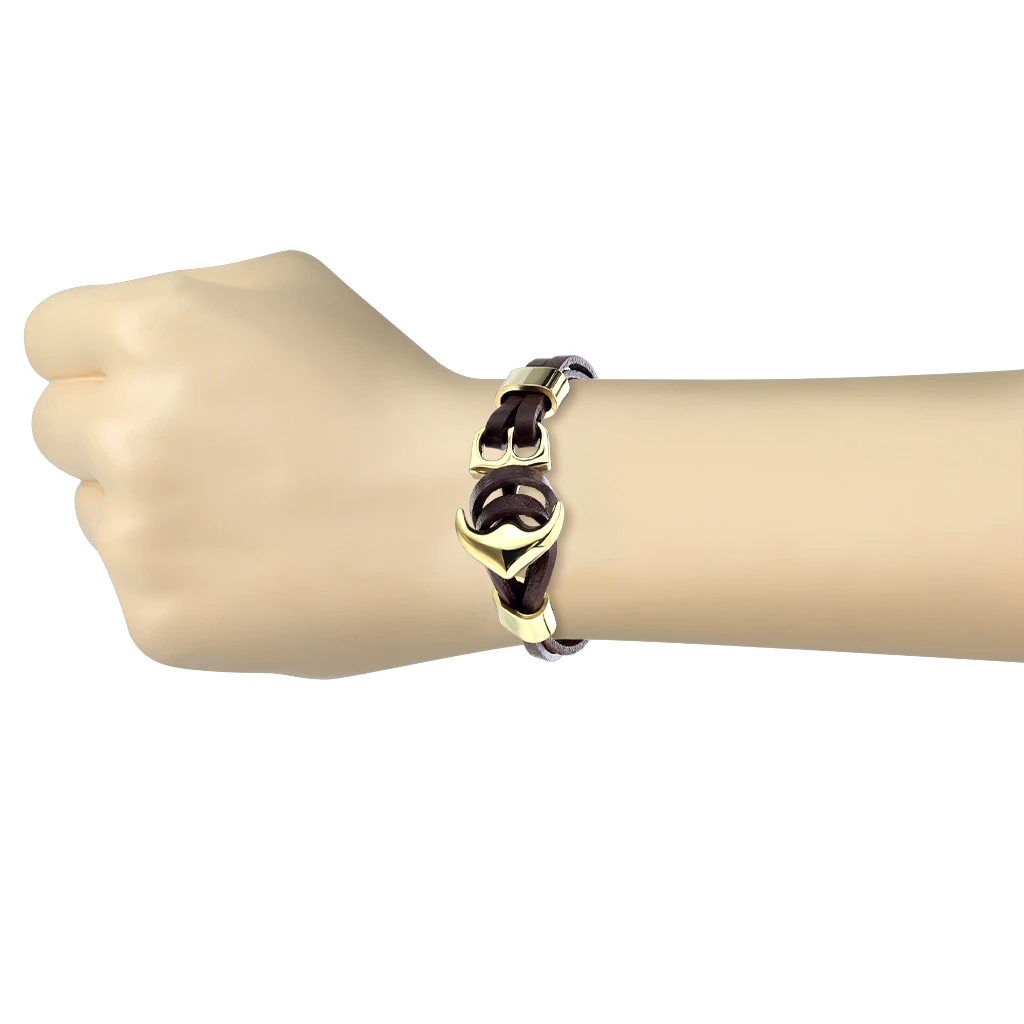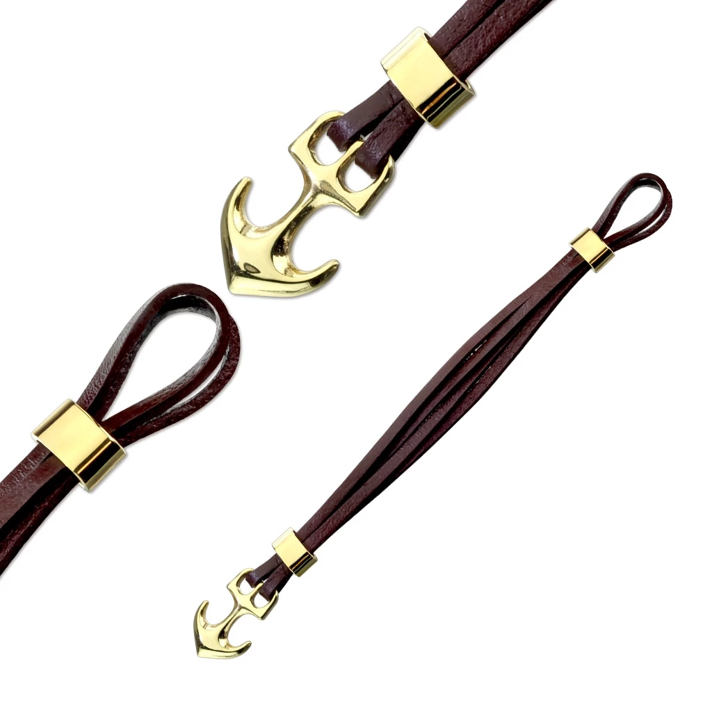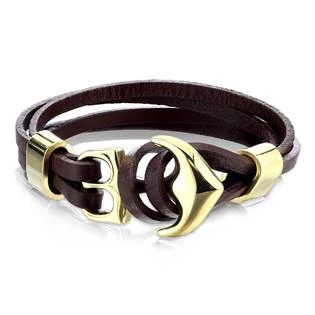 Koženkový náramek se zlacenou sponou ve tvaru kotvy