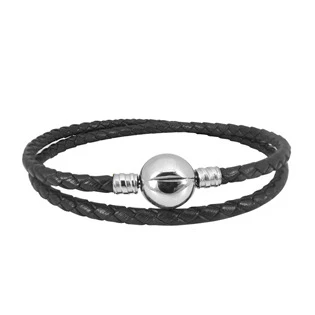 Černý kožený náramek s ocelovým uzávěrem v podobě kuličky