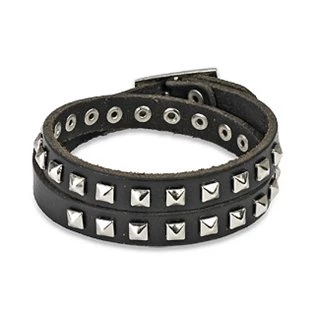 Kožený náramek zdobený čtvercovými cvoky Náramek je vyroben z přírodní kůže Parametry materiál přírodní kůže barva černá šíře náramku 8 mm